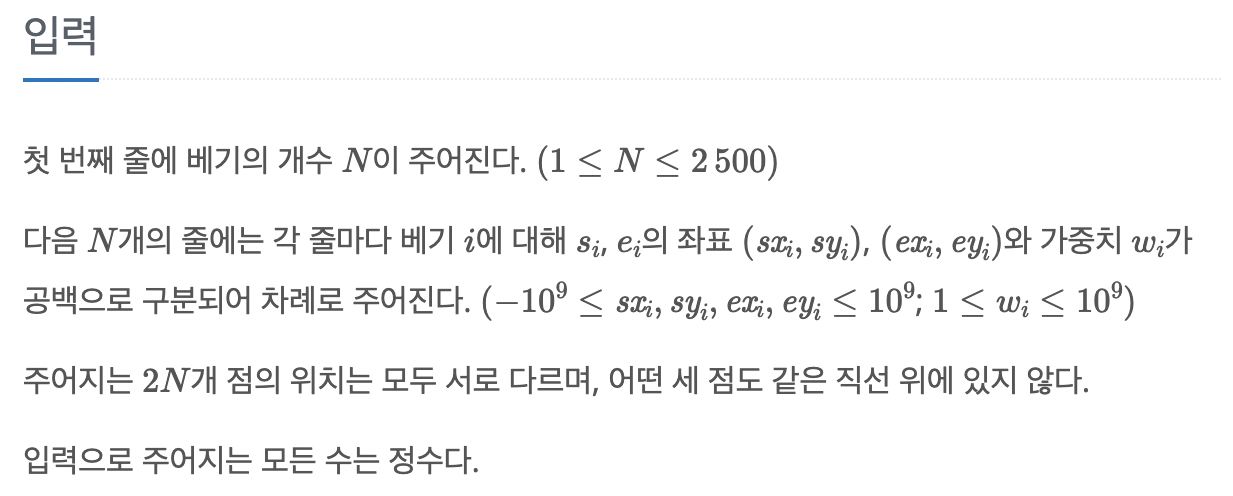 그래서 $x_i$가 오름차순 정렬된 상태로 주어지는 것으로 입력 형식을 수정했습니다. 입력이 $x_i$ 기준 오름차순으로 주어질 때 $O(N)$에 문제를 해결할 수 있기 때문에 파이썬으로도 이 문제를 해결할 수 있습니다. 이 아이디어는 kclee2172님께서 제공해 주셨습니다.