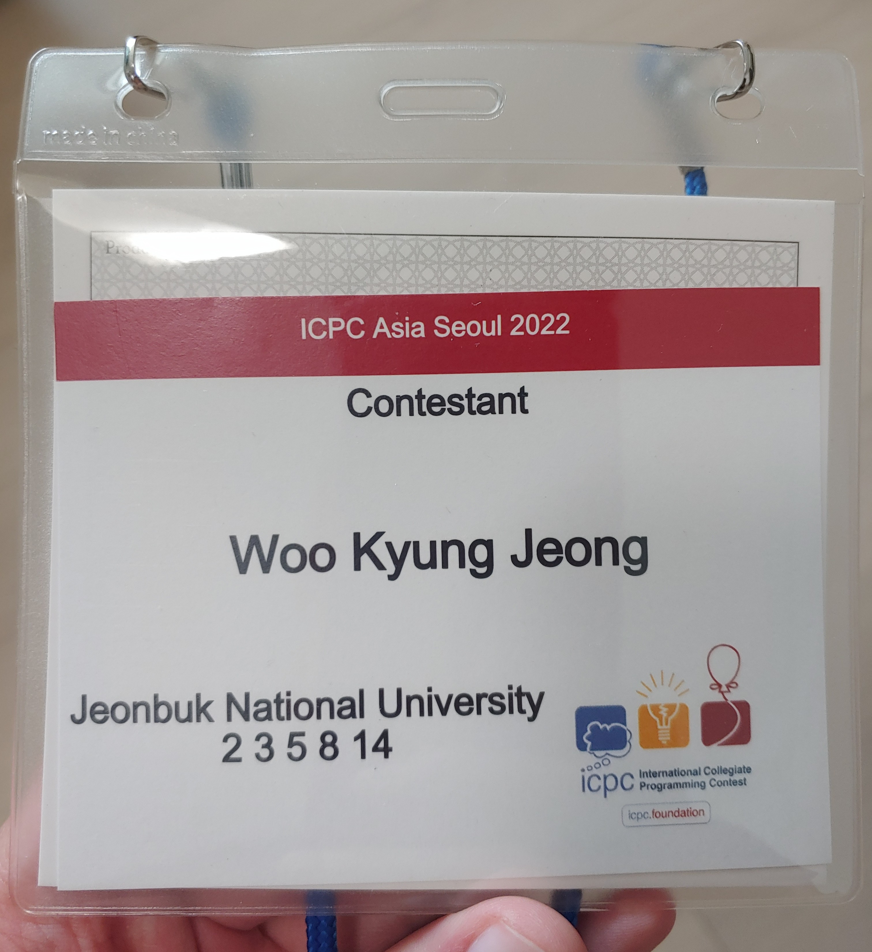 - 저희 팀은 팀 이름을 정하는데 많은 고민이 있었습니다. 다른 팀들의 원한을 살 수 있는 'Problem J is well-known DP', 요즘 가장 핫한 래퍼 NBA YoungBoy에서 영감을 받은 'JBNU YoungBoys'나 'JBNU Never Broke Again', 전 UFC 더블 챔피언 코너 맥그리거를 따라 지은 'Jeonju McGregor: The Notorious'나 'The Notorious Jeonju McGregor', 기타 'Code Gangsta', 'Farmer Takahashi and N Wagyu', 'Bibimbap Boys' 같은 팀 이름 후보들이 있었습니다. 최종적으로 피보나치 수에서 영감을 받은 '2 3 5 8 14'로 정했습니다.