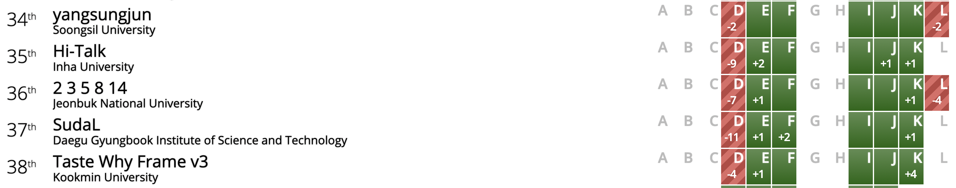 드디어 고대하던 본선 대회입니다. 결과부터 말하자면 총 5문제를 풀어 최종 36등으로 마무리했습니다. 사실 수상하기에는 저희 팀의 전력이 객관적으로 부족하다는 것을 알지만, 2n위는 노려볼 만하다고 생각했는데 아쉽습니다.